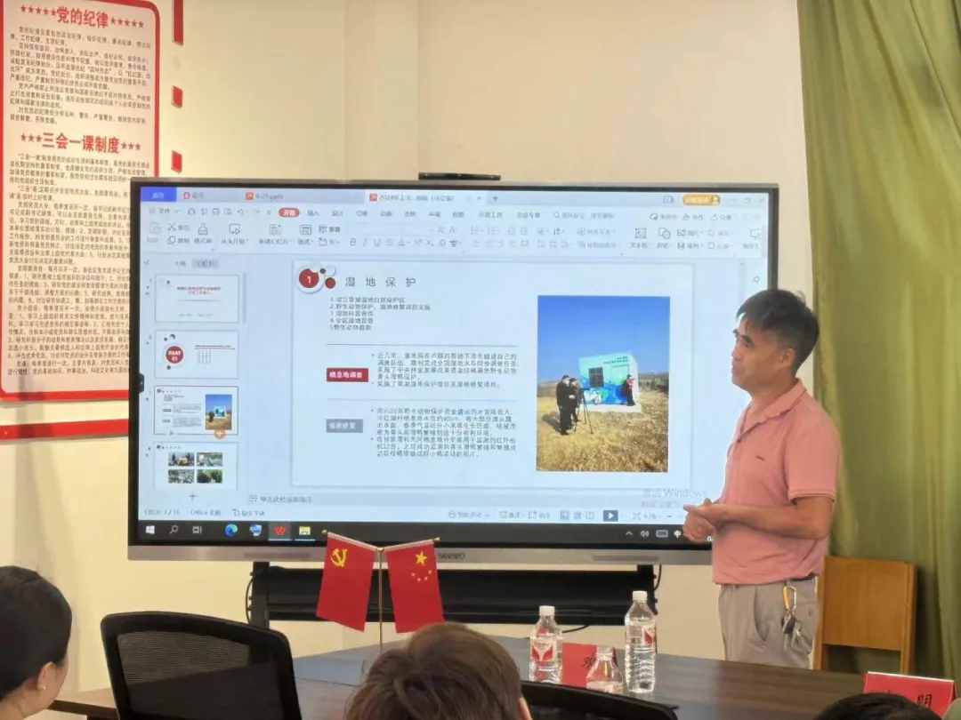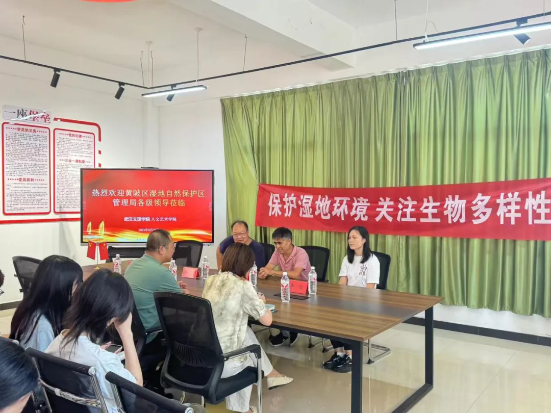 武汉市黄陂区湿地局副局长马立强分享了他们的日常工作。他谈到,湿地保护工作涵盖多个方面,包括监管监测、环保自查、宣传教育、联合执法以及野生救助等。通过马副局长的分享,师生们更加深入地了解了湿地保护工作的复杂性和艰巨性。