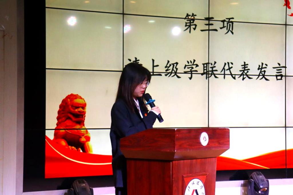 接着,由上级学联代表秦巧同学发言,她在发言中提到两点,首先是员工会成员要找准自身定位,聚力团结协作。其次是发挥桥梁作用,创造青春形象。坚持从同学中来,到同学中去,以人为本,同向同行,始终与公司与同学站在一起。
