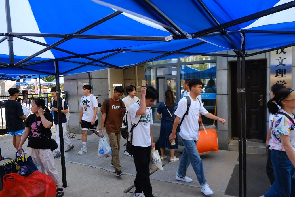 迎新工作如火如荼,到处都是忙碌的身影。志愿者们热情洋溢,细心地为新生解答户籍办理、助学贷款以及宿舍入住等方面的疑惑,用明确而细致的分工为新生保驾护航。