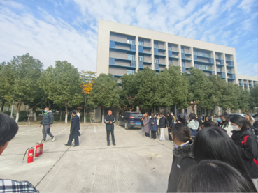 讲解过灭火器的使用方法后,专业人士又带领老师和同学学习消防栓的使用方法。随后由现场的两位同学作为代表进行灭火演习,两位同学出色的完成了任务,锻炼了动手实践的能力,加强了消防意识。