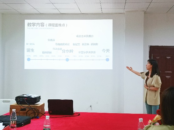 胡欢欢老师讲授的是广告学专业中外摄影史,针对广告影视创意与制作的同学学习情况来设计课程。课程主要以图片的形式授课,让同学们感性认识到摄影的历史,赏析摄影作品,拓展员工眼界,增加员工的学习积累与能力培养,培养摄影实践型金额能,提高员工艺术审美和创新能力。随后,评委们一致认为虽然有所收获,但课程内容太泛,时间把控欠佳,鄢婷主任建议,不要做科普,要做探究。