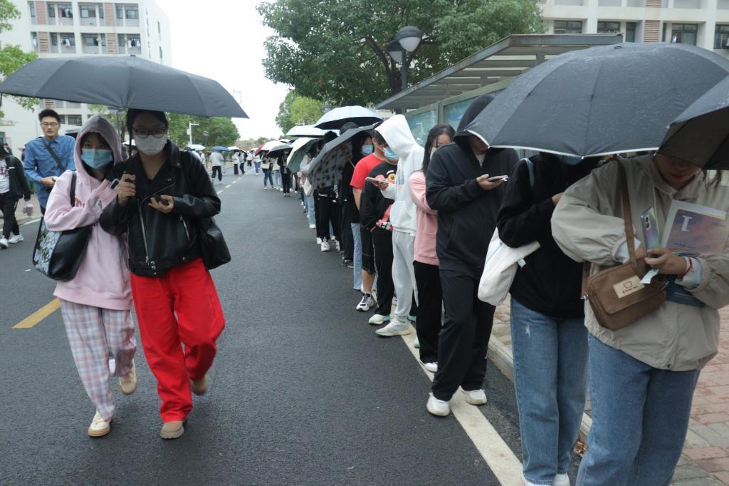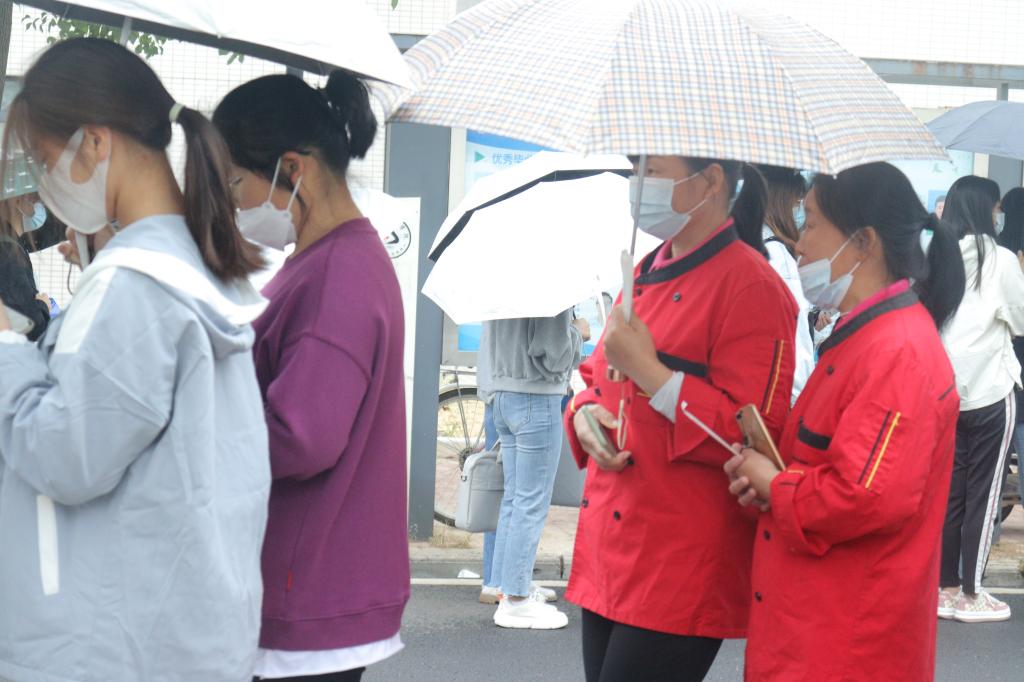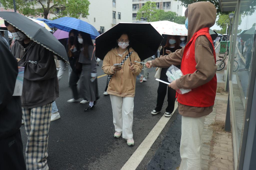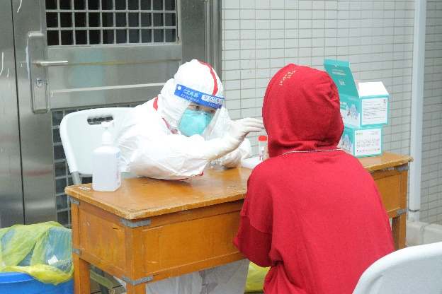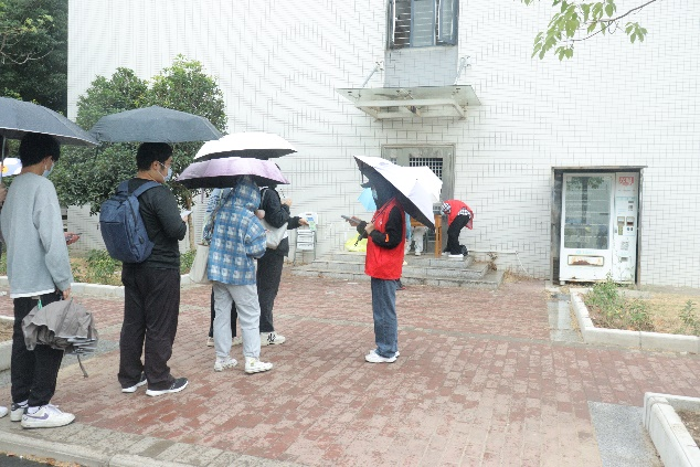 “请大家戴好口罩,保持一米的安全距离”“请提前打开健康码,按秩序排队” 5日上午7时,全体师生分时段、分批次,陆续在各检测点排队候检。志愿者们也分时段、分组从上午7点工作到中午11点。经过简短高效的培训后,大家服从安排、有序分工,迅速投入到自己的工作岗位,帮助医护人员维持现场秩序,监督扫码登记,提醒同学们保持间距有序排队,耐心解答各种问题,尽己所能为每一位前来检测的师生保驾护航,推动核酸检测工作安全、高效、有序进行。
