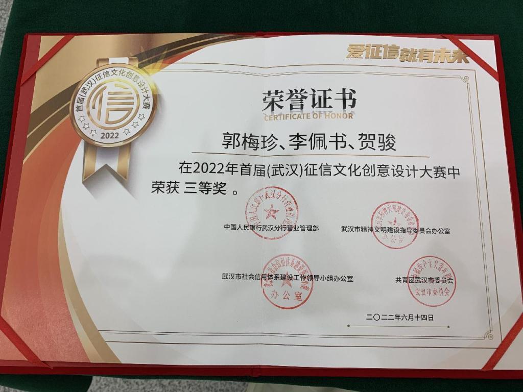6月14日是全国第15个“信用记录关爱日”,以“爱征信,就有未来”为主题的2022年首届(武汉)征信文化创意设计大赛颁奖活动近日在中国人民银行武汉分行营业管理部圆满落幕。