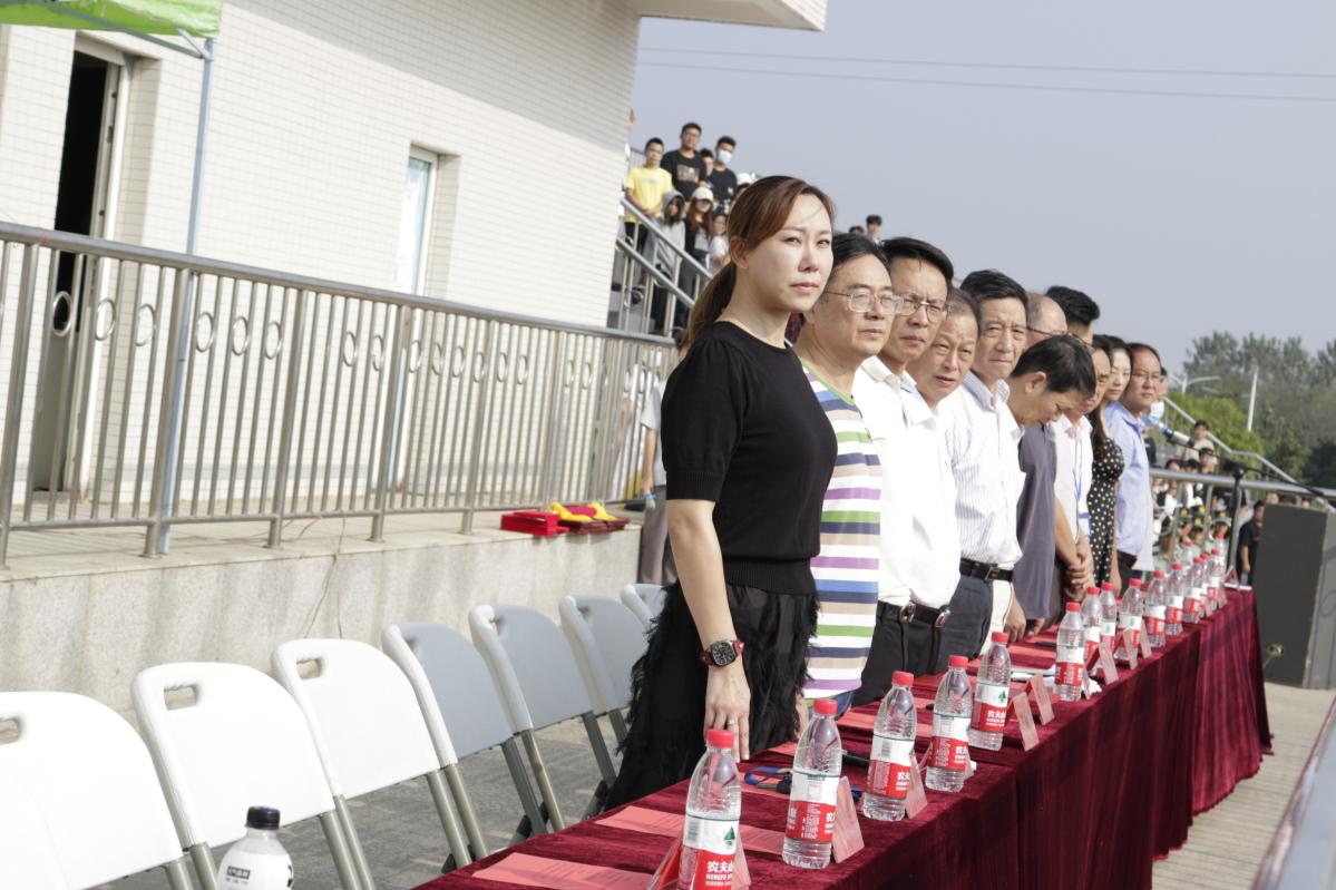 阅兵式在庄严的升旗仪式中拉开帷幕,全体师生奏唱国歌,向国旗行注目礼。