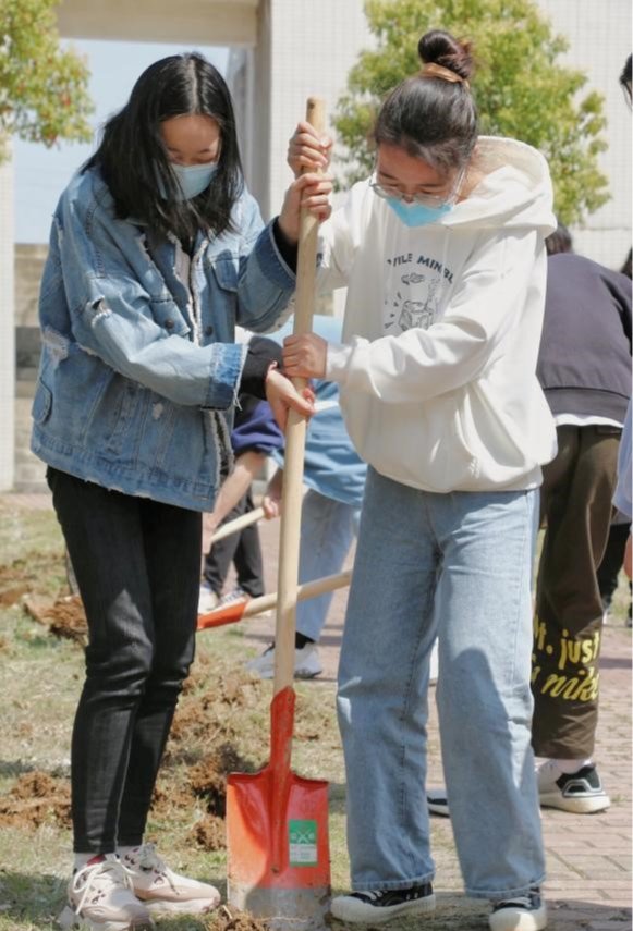 在实践活动的现场,人艺学子积极参与劳动,有序的进行松土、栽种、浇水等工作,大家互帮互助,你扶苗我松土,你栽种我浇水,植树现场呈现出一派繁忙景象,同学们劳动情趣高涨。