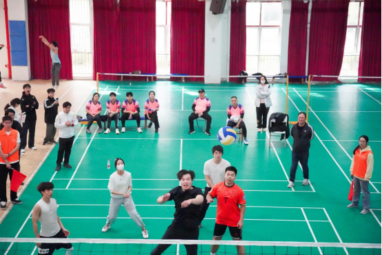 这是一次“文”与“武”的华丽交响。气排球,看似轻盈,却极考验技巧、默契与瞬间的爆发力。在赛前,教职工代表队刻苦训练,不断淬炼技术、磨合默契,这极大的激发了全队的斗志。赛中教职工代表队将自己的优势发挥得淋漓尽致——教职工代表队将人文学科的缜密思维与艺术学科的灵动创意完美融入比赛,这成为了教职工代表队制胜的独特武器。教职工代表队的传球,仿佛经过精心设计的构图;教职工代表队的防守,如同协奏曲中严丝合缝的声部配合;每一次成功的拦网与反击扣人心弦。