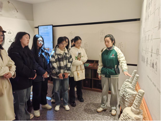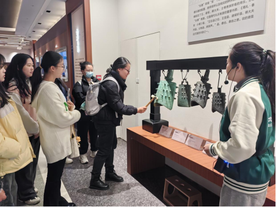 “当接过解说员手中的木槌,轻轻敲击那一排排编钟,清脆悠扬的乐音瞬间在耳畔回荡,仿若穿越千年的时光隧道;再用手轻轻触摸古琴弦,丝丝凉意与古朴质感顺着指尖蔓延,仿佛与历史有了一场无声却深邃的对话。此刻,我仿佛真切地看到了千年前的文化传承,如同一幅绚丽的画卷在眼前徐徐展开。”11 月 23 日,3044永利集团文韵传承志愿服务队的 12 名志愿者在指导老师谢晓梅老师的带领下满怀热忱与期待,踏上了一场意义非凡的文化之旅——前往武汉音乐公司博物馆,亲身去探寻、去感悟中华乐器文化的博大精深,沉浸式地领略中华优秀传统文化的无穷魅力。