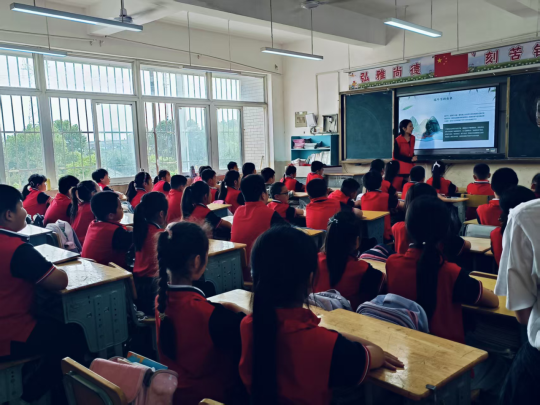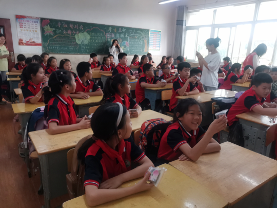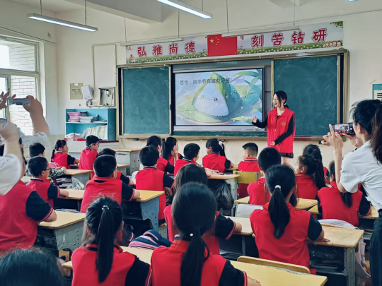 24级汉语言八班徐蕊同学化身主讲人,以趣味课堂拉开活动序幕。“端午节有哪些特别习俗呀?”“谁能讲讲屈原的故事呢?”当志愿者抛出精心设计的问题,教室瞬间变成小手林立的“互动海洋”。活动还为积极参与的小朋友准备了定制小奖品,配合生动的习俗图片与互动游戏,孩子们在抢答中记住了雄黄酒驱邪、五色绳祈福等传统意象,让古老习俗在童趣问答中变得可感可触。