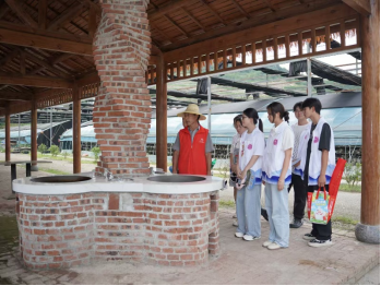 在黄畈村珍稀菌科普文化产业园,服务队的调研深度超越了简单的参观学习。其中汉语言文学专业的队员们敏锐捕捉语言的力量,他们仔细聆听村干部讲解“市场主体+农户+村集体”的联农带农模式,记录村民 “既能顾家,又能增收”的质朴心声,并协助梳理“山上有林、林中有菌、林下有药”的生态富民故事。新闻学专业的队员们则化身乡村记录者与传播者。他们深入赤松茸菌床、花菇温室大棚、用镜头精准捕捉菌菇破土而出的盎然生机、菇农专注劳作的动人身影以及现代化加工设备的运转场景。艺术专业的队员们则发挥创意想象,为传统农业插上数字艺术的翅膀。他们细致观察菌菇形态、纹理和生长环境,采集丰富的视觉元素,构思菌菇主题IP形象、科普动画脚本以及未来科普馆的虚拟空间展示方案。