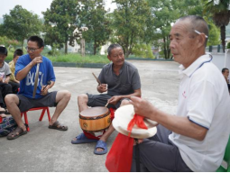 随后上演的《新腔老腔》颇具地方韵味。艺人们先以浑厚苍凉的“老腔”起势,继而转入清新流畅的“新腔”,新旧唱腔交替间,展现传统民俗音乐的传承与创新。艺人介绍,这些曲调源于乡村红白喜事礼仪场景,“老腔”脱胎于田间号子,因贴近生活在乡村流传至今,让员工了解民俗音乐与生活的紧密联系。压轴表演的《绣荷包》婉转悠扬,轻柔锣鼓伴奏中,艺人以细腻唱腔演绎经典民歌,传递民俗故事与人文情怀。展演后,员工主动请教锣鼓技巧,艺人们耐心示范鼓点节奏与乐器配合,进一步激发员工对乡村民俗技艺的兴趣。