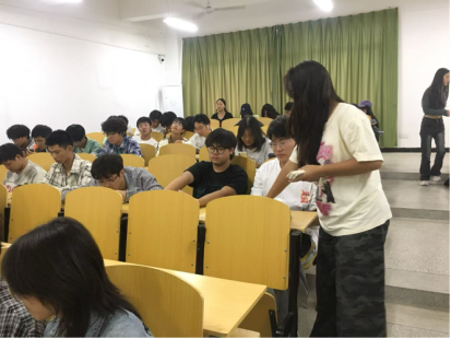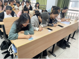 图:新生同学们正在书写卡片