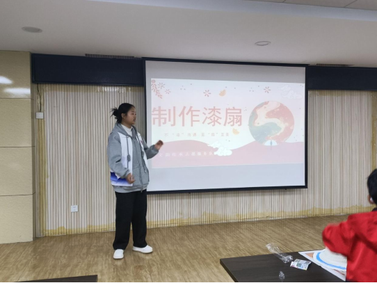 动手创作环节作为活动核心,参与者分组投身专属漆扇打造,志愿者全程手把手指导,助力大家将创意构想转化为精美作品,独特巧思在创作中充分彰显。作品完成后,现场开展展示交流活动,参与者分享创作灵感与心得,各类特色漆扇尽显巧思与心意。