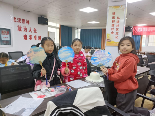 活动临近尾声,志愿者们细心将尚未干透的漆扇作品稳妥移送至指定晾晒区域,细致整理创作工具、擦拭洁净桌面,有条不紊收纳各类零散物料,为这场温馨有趣的漆艺美学体验画上温柔圆满的句号。完成创作的小朋友们满心欢喜地端详着自己的专属作品,不时与身旁伙伴分享创作心得与喜悦,欢声笑语中满是收获的成就感,沉浸式感受传统手工艺带来的独特乐趣与文化暖意。