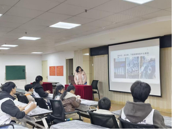 活动现场,志愿者们早已将白棉布、各色皮筋与靛蓝染料整齐摆放,静待孩子们的到来。小朋友们有序入座后,一双双好奇的眼睛在活动室里四处探寻,对即将开启的扎染之旅充满期待。随后,志愿者站在台前,用生动易懂的语言讲解扎染的起源、发展历程与文化内涵,结合一幅幅色彩雅致、花纹别致的扎染作品展示,将这项古老技艺的魅力娓娓道来。孩子们双眼亮晶晶地凝视着展品,认真记下不同扎法的要领,小脸上满是跃跃欲试的憧憬。