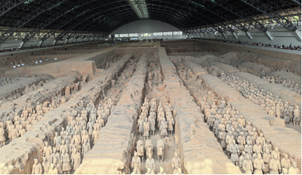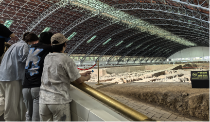 秦兵马俑出土于秦皇陵陪葬坑,同学们在专业老师的指导下细致观察了秦兵马俑一号坑中秦俑的造型、服饰细节及色彩运用。秦俑的铠甲纹饰、发髻样式以及面部表情的刻画,为同学们提供了古代雕塑艺术的范本,加深了对秦代工艺技术的理解,汲取设计灵感,并将传统元素融入现代设计作品。
