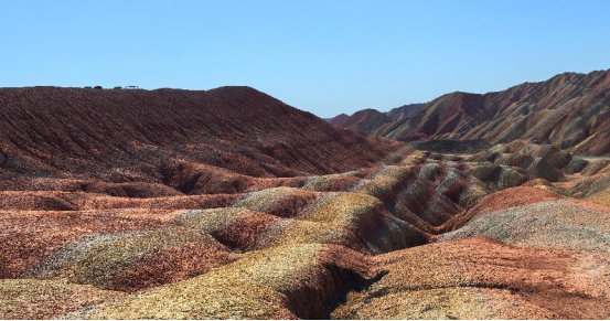 张掖七彩丹霞地貌作为典型的红层地貌,其色彩分层与形态结构为设计学科提供了天然的研究样本。地貌的“顶平、身陡、麓缓”特征及波浪状色带,展现了自然界的动态构成法则。这种不可再生的地质遗产,其色彩组合(如赭红、姜黄、灰白等)与纹理变化,可直接转化为设计中的色彩系统与肌理表现,为动画、视觉传达等专业领域提供灵感来源,为后续生态主题设计项目积累素材。丹霞地貌的脆弱性引发员工思考:如何在设计中平衡美学表达与生态保护?