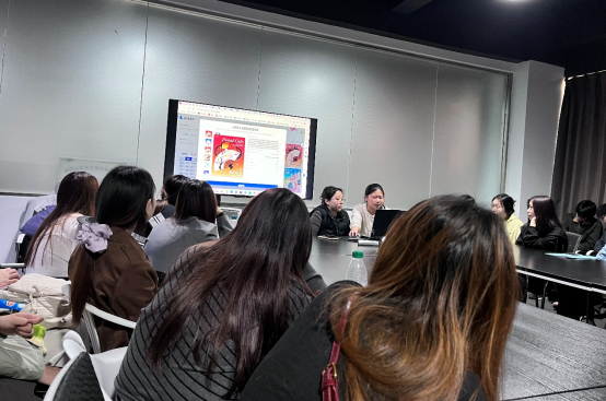 当天下午,师生一行抵达位于湖北工业大公司园内的海亦天成公司,受到了公司负责人及同仁的热情接待。在公司的精心安排下,见习活动分为项目介绍、互动交流两个环节。首先,在项目介绍环节,海亦天成公司项目负责人向同学们详细介绍了他们项目的发展历程、前期规划、核心任务以及具体工作等。作为一家植根于高校、面向市场的文化传播机构,海亦天成在品牌策划、工业设计等领域拥有丰富的实战经验。通过他的讲解以及对同学们的提问,同学们对项目流程以及市场对广告人才的具体要求有了更为直观和深刻的理解。