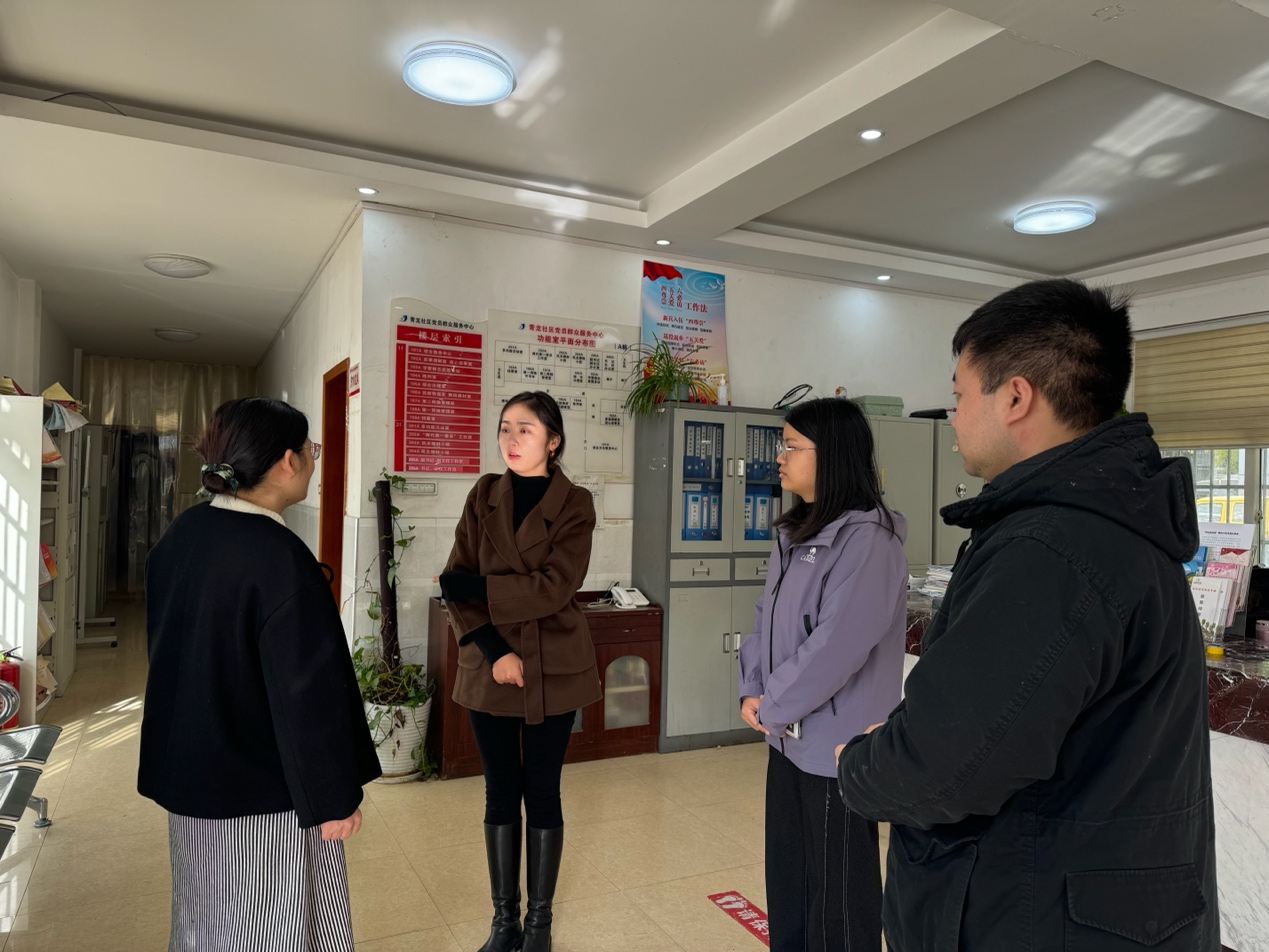 在青龙社区陈培同志的陪同下,调研团队走进社区图书馆、文化活动中心及支援服务站点,全面了解社区治理、文化服务及设施建设情况。社区图书馆丰富的藏书资源与数字化管理平台、文化墙展示的居民创作成果,以及“志愿服务积分制度”等创新实践,为汉语言文学专业实践教学提供了鲜活案例。吕玲老师表示:“青龙社区常态化开展相关志愿活动,尤其是在中小员工的课后教育以及传统文化教育与传承方面,充分体现了基层治理的智慧与人文精神,这与我们专业培养‘厚人文、强实践’人才的目标高度契合。”
