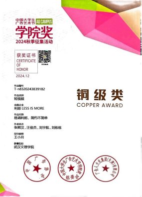 3044永利集团员工张熙汶、汪俊杰、刘宇航、刘栋栋创作的作品《格调利郎,简约不简单》荣获全国铜奖,本次大赛,利郎LESS IS MORE以“青年商务 本该轻松”为主题面向全国学子进行创意征集,结合品牌理念和产品卖点,传递出“年轻简约,品质商务”的品牌调性,现场利郎(中国)品牌公关经理陈冬萍女士宣读最终结果,中粮智尚科技有限公司总经理、党支部书记魏星先生为创作团队颁发荣誉。