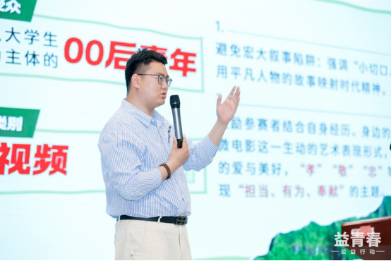 最后,广告人文化集团首席战略官、公司奖益青春评审主席周伟先生的创意分享,堪称一场“红色叙事年轻化”的破局指南。“红色文化与创意表达并非对立,而是可以相辅相成”。周伟先生分享了多个成功的微电影案例,与同学们共同探讨公益微电影的“共情逻辑”。他鼓励同学们打破“红专叙事”的刻板印象,用跨界思维赋予红色文化新生机。这场分享不仅为同学们提供了宝贵的创作灵感,更激发了他们对红色文化传承与创新的使命感。