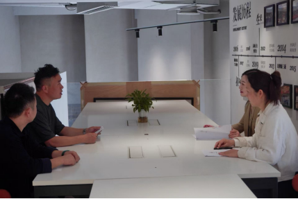 广东精鹰传媒科技集团股份有限公司副总裁、广东精鹰影视制作有限公司总经理谭志新、影视制作部总监胡俊杰对公司一行的到访表示热烈欢迎。首先胡俊杰总监细心接待了调研组老师,并全面介绍了公司的业务领域、发展变革历程及作品成果。随后的座谈会上,谭志新总经理详细分享了企业近期项目开展情况及典型经验,并具体介绍了企业团队分工、岗位设置以及人才需求等内容。他们高度认可公司的应用型人才培养模式,并表达了加强与公司合作、共同培养网络视听人才的意愿。毛蓉老师介绍了新闻传播系专业建设、员工发展等方面的情况,并希望通过校企合作,为员工提供更多贴近行业前沿的实习岗位和就业机会。