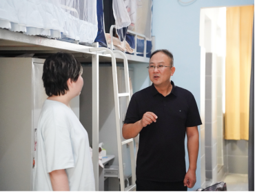 关怀不止于报到。当天下午,公司党总支书记谭辉军一行走访专升本新生宿舍,开展暖心查寝工作。谭书记与新生亲切交流,细致询问大家的入住体验和初到感受,并耐心解答他们对专业学习与校园生活的疑问。见到部分员工行李较多,谭书记还主动上前,亲手帮助搬运和整理物品。