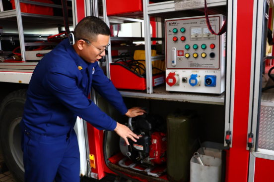 党员同志们在消防员的带领下首先参观了各类先进的消防救援装备。从安全保障的防护器具到精密细致的破拆工具,从功能强大的灭火器材到高大威猛的消防车,每一件装备都让大家眼前一亮。消防讲解员详细介绍了各种装备的名称、用途和操作方法,党员同志们认真聆听,对消防救援工作的专业性和复杂性有了更深刻的认识。