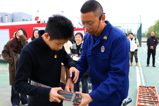 接着,消防队员们还为大家进行了精彩的技能演示。他们动作敏捷、配合默契,迅速完成了云梯攀爬等一系列高难度动作,赢得了在场党员们的阵阵掌声。在消防队员的指引下,公司党员同志也亲身体验了云梯攀爬这一科目,只有亲身经历才明白这些精湛的技能背后,是无数次的严格训练和实战考验,充分展现了消防队员们过硬的业务素质和顽强的战斗精神。除此之外,消防队员们还为公司党员同志们科普如何正确使用灭火器,并亲身示范。在消防员们的辅助下,公司党员同志也亲身体验使用灭火器进行灭火。他们依照消防员所传授的正确操作步骤,拔掉保险销、握住喷管、对准火源根部,随后用力按压把手,看着干粉喷射而出迅速扑灭火焰,在实践中切实强化了自身的消防安全技能与应急处置能力。