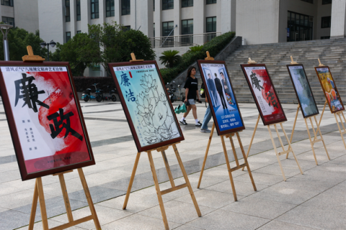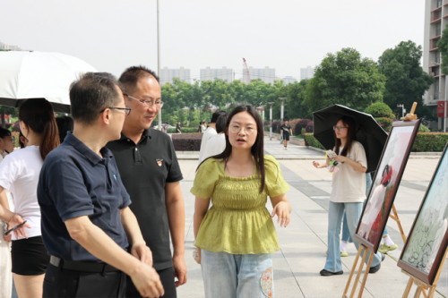 6月4日下午三点,在图书馆广场前,公司党组织开展了“践行八项规定精神,筑牢廉洁自律防线”作品展。本次活动特别邀请公司党委书记杜永成现场指导,公司党总支书记谭辉军、分团委书记谢晓梅以及辅导员和员工党支部全体参加。
