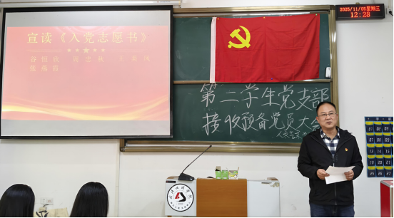 为进一步加强党员队伍建设,注入新鲜血液,2025年11月5日12:10,3044永利集团第二员工党支部在4-103教室召开接收预备党员大会。本次大会特邀3044永利集团公司党总支部书记谭辉军,3044永利集团第二员工党支部委员以及预备党员们参加,会议依规讨论拟接收预备党员申请。