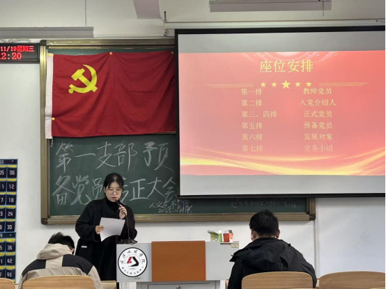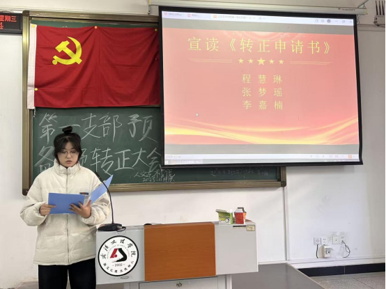 大会在激昂的《义勇军进行曲》中拉开帷幕,全体参会党员肃立致敬,铿锵的旋律激荡着每一位党员心中的家国情怀与责任担当。随后,程慧琳等三位同志依次情真意切地宣读了《转正申请书》。她们结合各自一年预备期内的学习、工作与生活实际,深情回顾了在党组织的悉心培养下,思想上的深刻洗礼、理论上的显著提升以及行动上的自觉锤炼。她们汇报了在深入学习党的二十大精神与习近平新时代中国特色社会主义思想过程中的主要收获与进步,也坦诚剖析了自身在理论系统性、实践经验等方面存在的不足,并提出了明确的改进措施,表达了对加入党组织的坚定渴望与为党的事业不懈奋斗的赤诚之心。