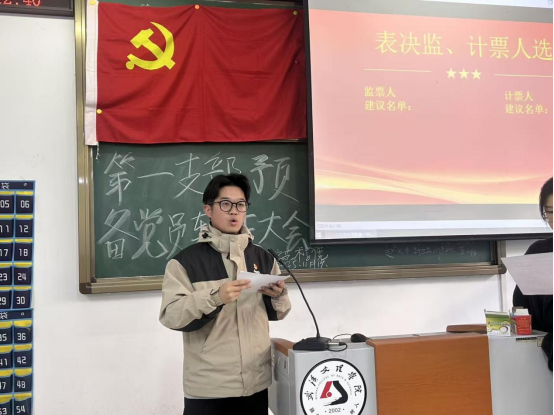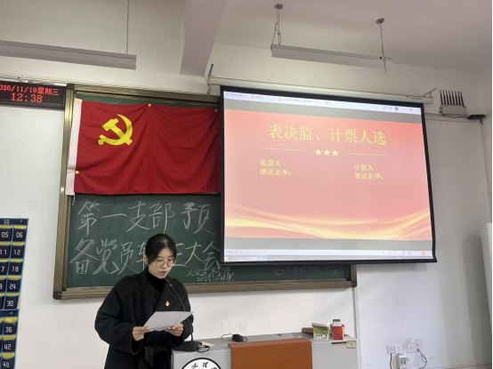 经有表决权的全体正式党员无记名投票表决,大会一致同意接收程慧琳等三位同志按期转为中共正式党员。这一庄严的时刻,不仅是对三位同志过去一年努力的肯定,更是她们政治生命中一个崭新的起点。党支部书记宣读了大会决议草案,并代表支部向三位新党员表示热烈祝贺,希望她们转正后,继续加强理论学习,不断提升党性修养,勇于在实践中磨练意志、增长才干,时刻以优秀党员的标准严格要求自己,在各自的岗位上创造更加优异的成绩。