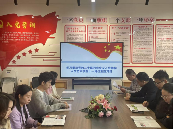 会议最后,教师党支部书记向颖作总结,明确将建立全会精神常态化学习机制,通过专题创作研讨、社区艺术服务等活动,推动学习成果转化为教书育人实效,为服务文化强国建设贡献人文艺术力量。