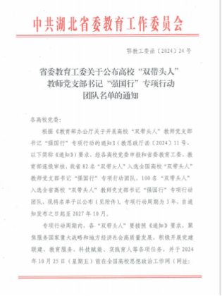 公司教师党支部入选湖北省高校“双带头人”教师党支部书记“强国行”专项行动团队